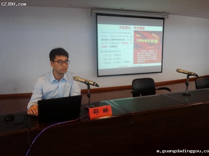 10月10日,我院邀请中共常州市委党校副教授邵晔为大家作了一场“不忘初心、牢记使命—学深悟透习近平新时代中国特色社会主义思想”专题辅导报告会。常州市委教育工委“不忘初心、牢记使命”第六巡回指导组副组长、市教育局终身教育处处长丁皓、院长于再、党委书记孙利兵、副院长吴建东、党委委员、院长助理郑秋平,学院科级以上干部和全体党员到会听取了邵教授的辅导报告。 邵晔副教授以扎实的专业素养、丰富的授课经验,从“不忘初心、牢记使命”主题教育总要求、根本任务、具体目标、具体要求、具体落实,第二批主题教育特色出发,引出中国共产党人初心和使命,通过“从理论中探寻党的初心和使命”、“从历史中重温党的初心和使命”、“在实践中践行党的初心和使命”三个层面讲解了 中国共产党人为实现初心和使命的奋斗历程,提出践行党的初心和使命要求做到坚定理想信念不动摇,始终坚持对党忠诚不渝,始终坚持以人民为中心,始终保持共产党员的政治本色。邵晔副教授的辅导报告内涵丰富,深入浅出,为学深悟透习近平新时代中国特色社会主义思想启发了思路。 党委书记孙利兵主持报告会,孙书记代表学院对邵教授的精彩报告表示感谢,并对学院“不忘初心、牢记使命”主题教育深入开展提出要求,第一、牢牢把握“守初心、担使命、找差距、抓落实”的总要求,努力实现理论学习有收获、思想政治受洗礼、干事创业敢担当、为民服务解难题、清正廉洁作表率的目标。第二,“原原本本学、认认真真悟”。以理论滋养初心、以理论引领使命,使科学理论在内心深处铸魂、扎根,提高真信笃行、知行合一的意识和能力,进一步增强“四个意识”、坚定“四个自信”、做到“两个维护”。第三,学和做结合起来,查和改贯通起来。推动学习教育、调查研究、检视问题、整改落实有机融合、贯穿始终、推进学院事业的发展。 邵晔副教授作“不忘初心、牢记使命”主题教育辅导报告 与会人员专心听取报告 党委书记孙利兵主持报告会